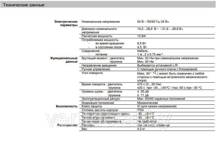 Belimo EF24A поворотный привод Белимо защищен от перегрузки, не требует конечных выключателей и останавливается автоматически при достижении конечных положений.